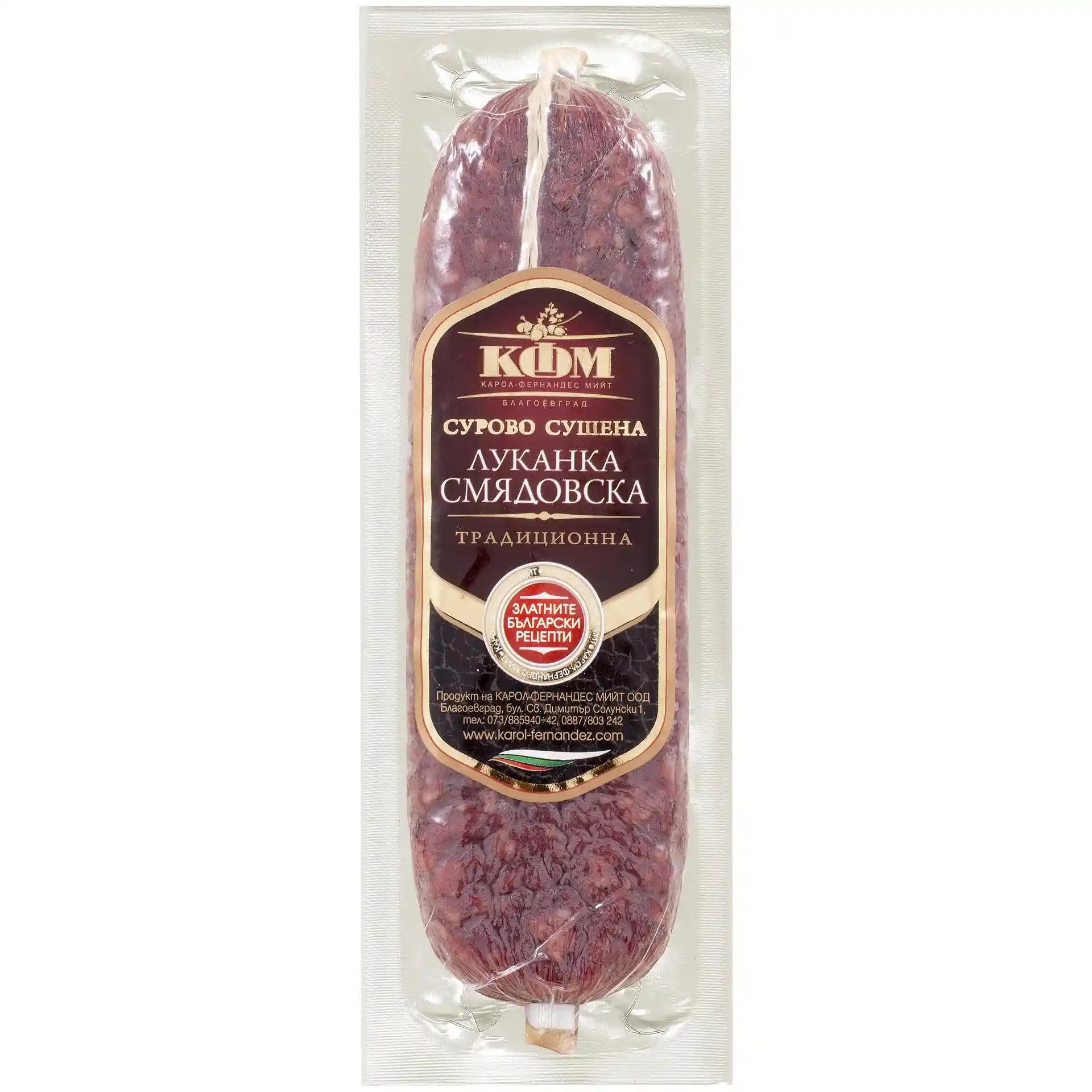 Premium-Produkt aus der КFM Classic-Kollektion, hergestellt aus Schweinefleisch in Kombination mit einer Mischung aus gehackten aromatischen Gewürzen. 100 g fertiges Produkt bestehen aus 175 g Fleisch. Es enthält keine GVO und Gluten. Die Hülle ist nicht essbar.
