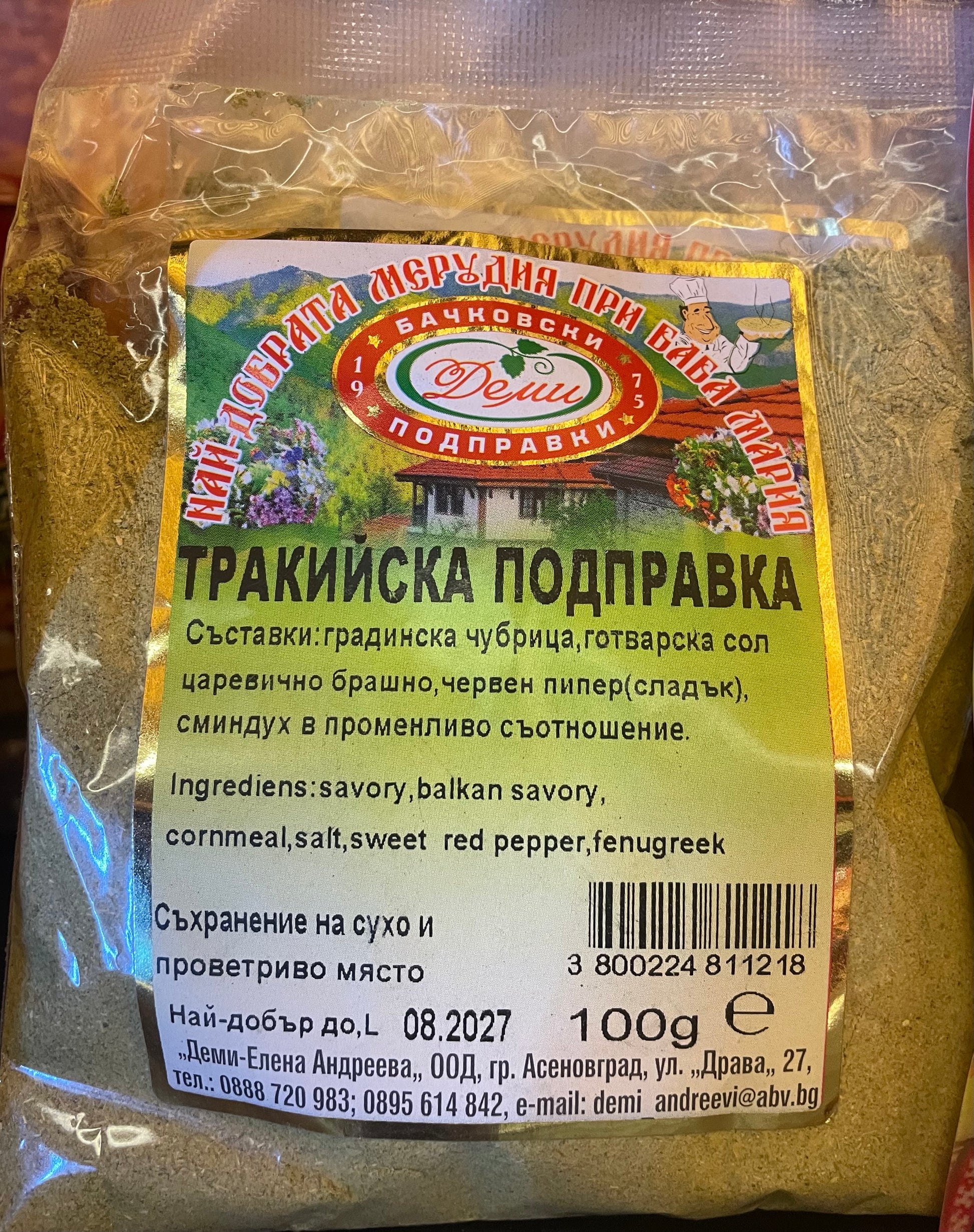 Das Demi Thrakisches Gewürz ist eine traditionelle bulgarische Gewürzmischung mit intensivem Aroma und würzigem Geschmack. Sie eignet sich hervorragend zum Würzen von Fleischgerichten, Grillfleisch, Hackfleisch, Eintöpfen sowie Gemüse- und Bohnengerichten. Die harmonische Kombination aus sorgfältig ausgewählten Kräutern und Gewürzen verleiht Ihren Speisen einen authentischen Geschmack aus der thrakischen Küche.